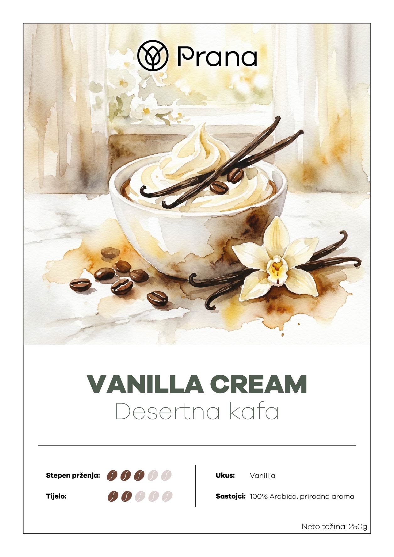 Vanilla Cream nije samo kafa, to je iskustvo deserta u tečnom obliku. Kreirana za ljubitelje slatkih nota, ova mješavina koristi vrhunska zrna 100% Arabice kao bazu, koja su zatim pažljivo obogaćena prefinjenom aromom vanilije. Cilj je bio stvoriti “impresivno iskustvo ukusa” gdje se karakter pržene kafe ne gubi, već savršeno nadopunjuje sa slatkoćom vanilije.