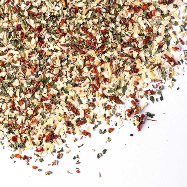 SASTOJCI: Luk, paradajz, peršun, čili, bijeli luk, paprika, biber, origano, bosiljak. (Može sadržavati tragove celera i gorušice)